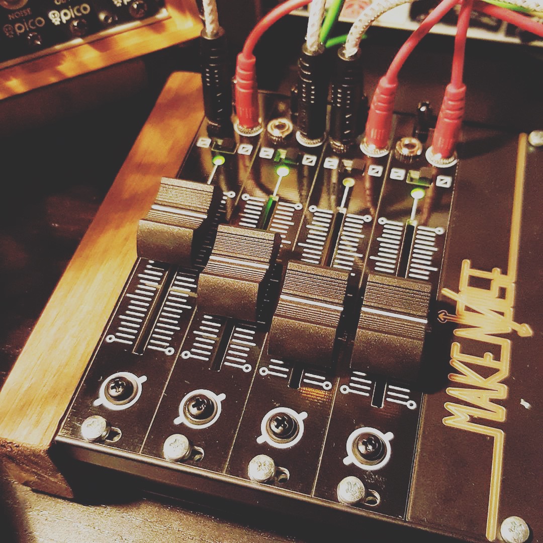 FADE gets more interesting if you LINK more units, this way you can mix signals together, or offset them easily. To mix signals, insert a cable in the output of only the last unit you want in the chain, this breaks the normalization and the signal won't appear further down the chain. You can set up a master volume by connecting the output of the module before the last one to the last one's, so that the last fader attenuates the mixed signal. If you connect an input source in unit 1, and no input to unit 2, you can use unit 2 as an offset for the signal, great for LFOs, envelopes, etc.